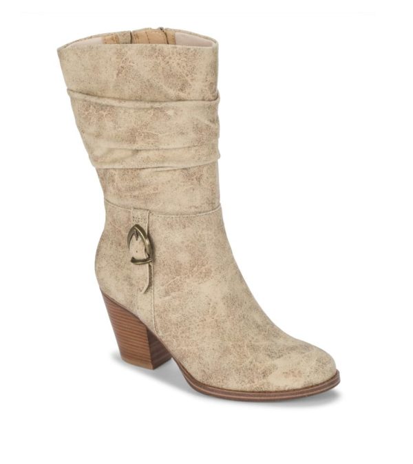 Fashion and comfort combine perfectly in our Baretraps Cheyenne mid-height boot.Constructed using a soft micro-fiber materials while featuring a stacked heel, a flexible cushioned insole and a zippered closure with stylish rouching on the upper with buckle accent.