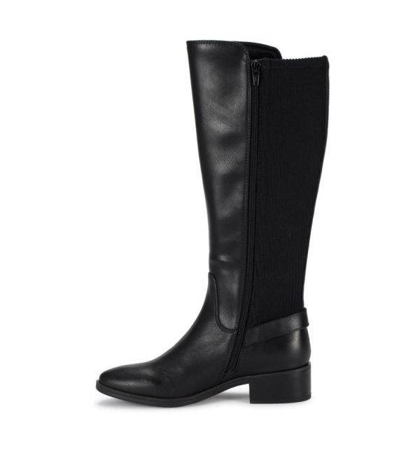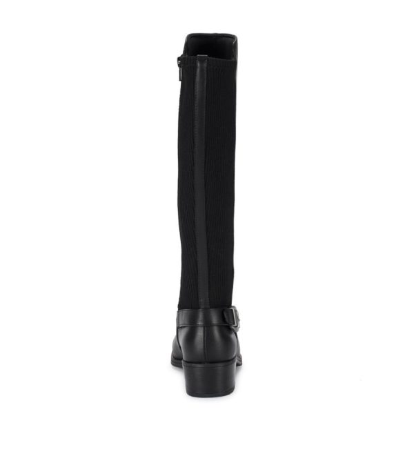 Saddle up! There’s something about a tall boot that instantly make a fashion statement. Our Mckayla Wide Calf riding boot features a stylish strap and buckle, stretchy elastic goring back and a real leather heel wrap.