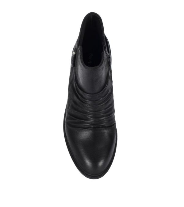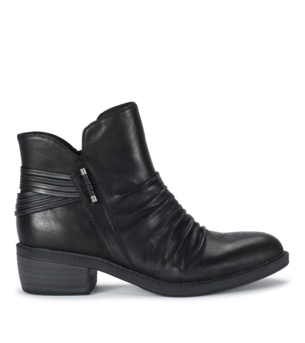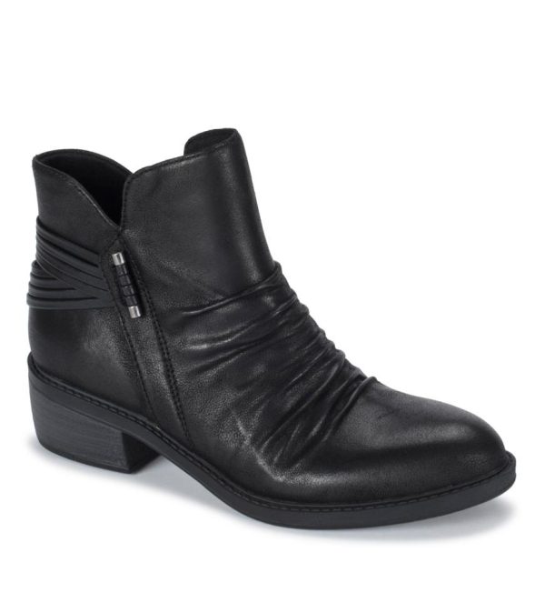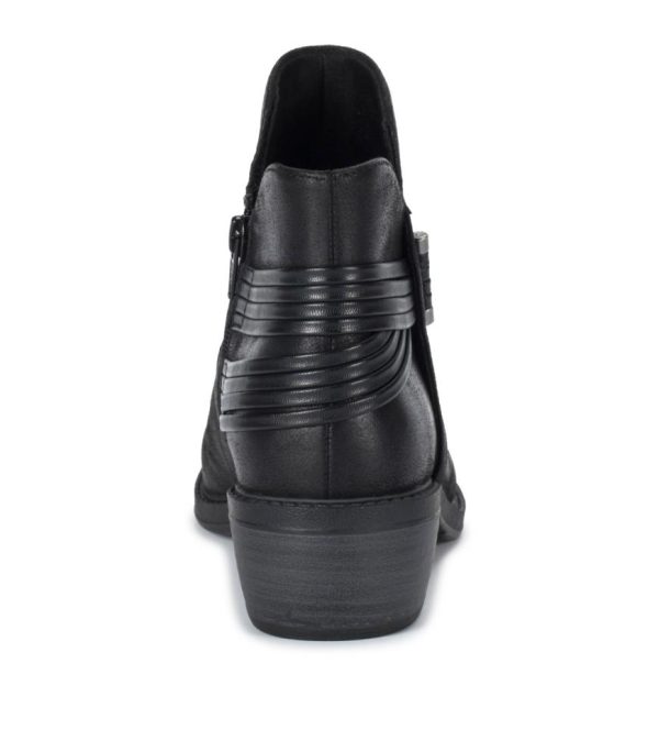 Get sassy with the Baretraps Sazzie ankle bootie.Featuring a unique and modern silhouette with a soft microfiber upper material with a stylish accent sash across the heel, rouching on the forefoot, a wide block heel and side zippered entry.
